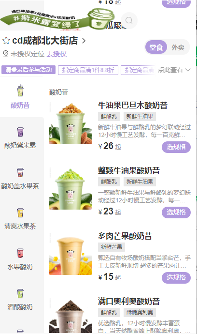 作為相對親民的老牌玩家,一只酸奶牛的價格帶主要在14-20元。一只酸奶牛以酸奶西米露系列為招牌產(chǎn)品,以“酸奶+水果/養(yǎng)生食材”為核心開發(fā)紅棗酸奶西米露、酸奶楊枝甘露等產(chǎn)品。