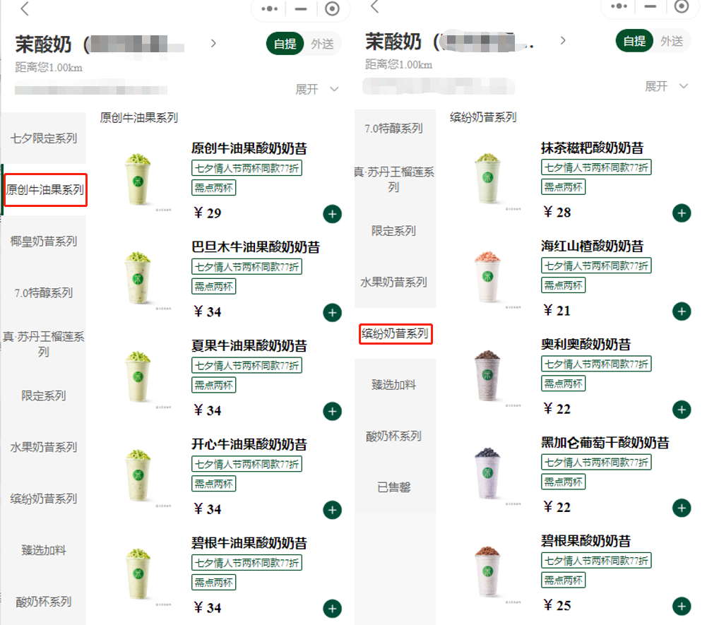 茉酸奶目前主要分布在一線、新一線城市,主打“一杯奶昔等于一顆牛油果”的心智。與同時包含酸奶、果茶、奶茶等多品類的現(xiàn)制酸奶店不同,茉酸奶的產(chǎn)品結(jié)構(gòu)較簡單,主推酸奶奶昔和酸奶系列??谖渡戏譃檎信朴凸推渌叨说乃?,通過添加堅果或甜品小料來豐富SKU。