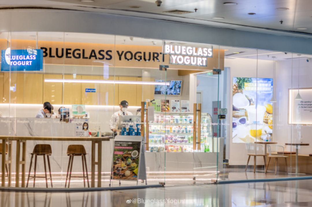 相對茉酸奶出名較晚一些的Blueglass,則主打希臘酸奶為基底的酸奶飲品新定義——冷萃酸奶,以更健康的高端酸奶形象切入酸奶飲品賽道。成立于2012年,Blueglass前身是北京一個名為“阿秋拉尕青藏酸奶”的品牌,在2018年改名為Blueglass Yogurt,開始講述更年輕時尚的新消費品牌故事。