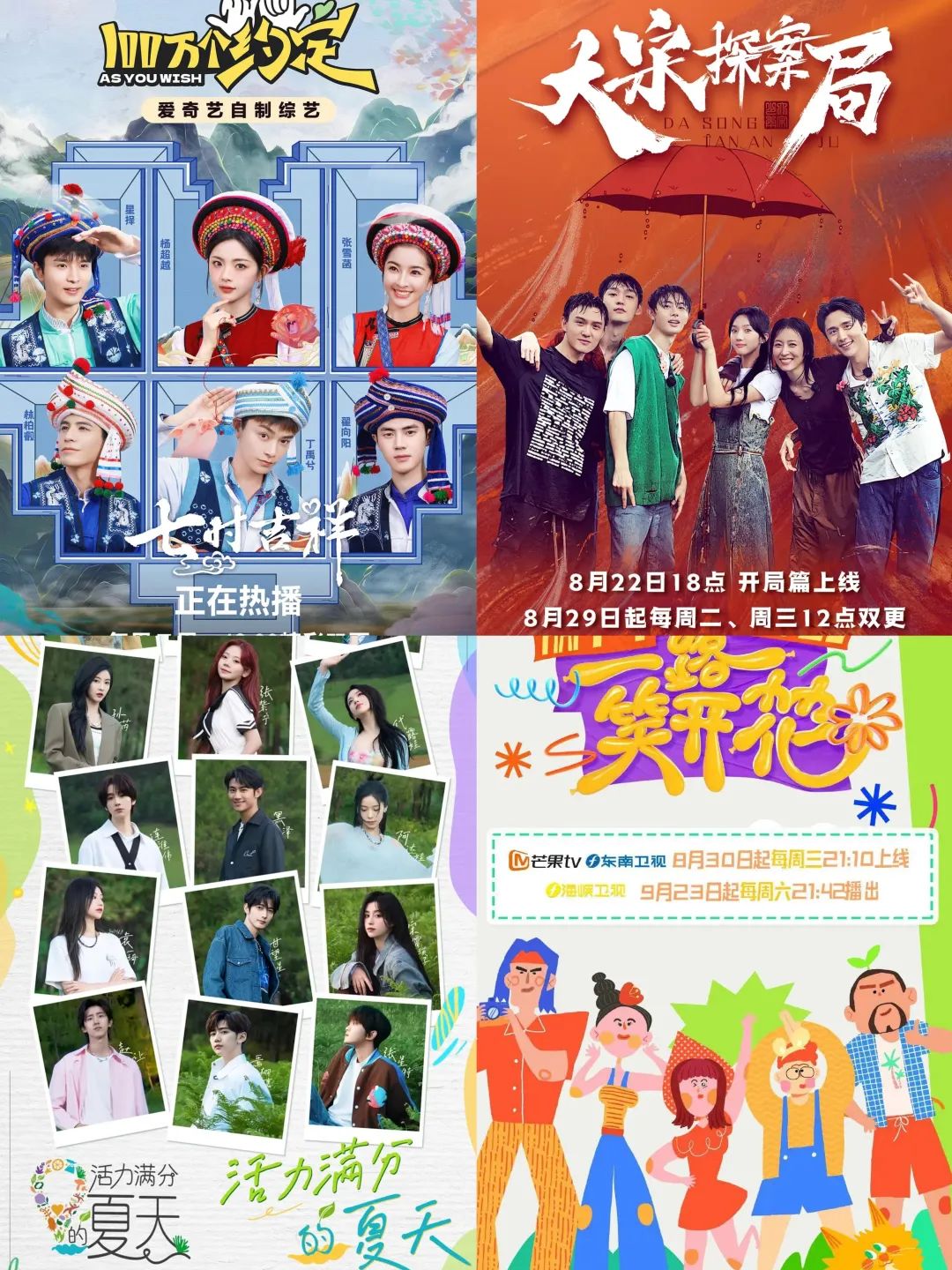 此外,從題材數(shù)量上來看,8月還涌現(xiàn)出了不少劇綜衍生節(jié)目?!?00萬個約定》是愛奇藝推出的劇綜聯(lián)動節(jié)目,目前進行到第一季的《七時吉祥》;《大宋探案局》《團建吧!七齋》都是圍繞《大宋少年志2》做出的聯(lián)動;《活力滿分的夏天》是《五十公里桃花塢第三季》的衍生節(jié)目;8月30日播出的《一路笑開花》,雖然不能算是《一年一度喜劇大賽2》的衍生節(jié)目,但主要嘉賓幾乎都是其中的選手,也是熟面孔的“團建”……通過小體量的衍生節(jié)目,能夠更好地拓展IP矩陣,完成平臺內(nèi)多個項目之間的打通,也帶給觀眾更多的“售后”體驗。
