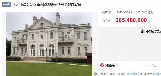 據(jù)阿里拍賣平臺(tái),8月28日上午一棟上海豪宅以2.85億元人民幣的價(jià)格,被競價(jià)拍下。