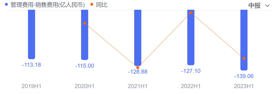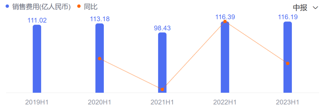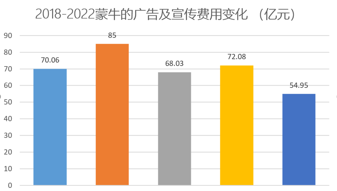 然而,在2023年上半年,這一趨勢開始回升,蒙牛的銷售費(fèi)用達(dá)到139.06億元,拉出近五年的新峰值,同比增長9.4%。且據(jù)公司方面表示,其中用于產(chǎn)品和品牌宣傳的費(fèi)用增加至約51.2億元,幾乎與2022年全年持平。