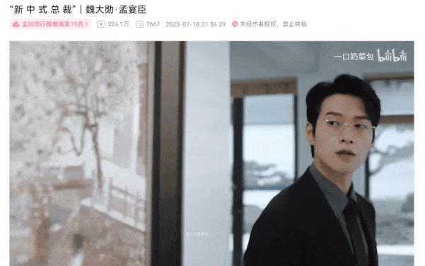 “新中式總裁”最初是一條B站二創(chuàng)的標題。UP主用周杰倫的中國風歌曲《蘭亭序》混剪了《我的人間煙火》孟宴臣的各種絕美畫面,獲得了二百多萬播放與八千多條評論。