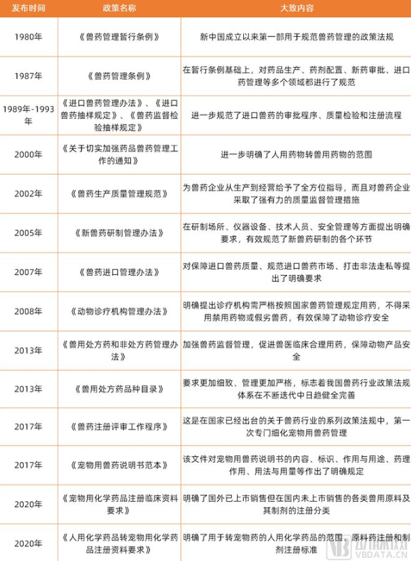 緊隨這一利好政策,國(guó)內(nèi)近年連續(xù)發(fā)布了《寵物用獸藥說明書范本》《寵物用化學(xué)藥品注冊(cè)臨床資料要求》《人用化學(xué)藥品轉(zhuǎn)寵物用化學(xué)藥品注冊(cè)資料要求》等專門針對(duì)寵物藥的政策法規(guī),宏觀層面表現(xiàn)出對(duì)寵物藥這一新興領(lǐng)域的重視和鼓勵(lì)。