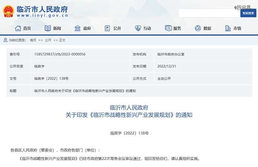 2022年12月,臨沂印發(fā)《臨沂市戰(zhàn)略性新興產(chǎn)業(yè)發(fā)展規(guī)劃》,《規(guī)劃》指出臨沂市大力推進(jìn)實(shí)體經(jīng)濟(jì)發(fā)展,堅(jiān)定不移實(shí)施先進(jìn)工業(yè)強(qiáng)市戰(zhàn)略,聚焦新一代信息技術(shù)、高端裝備制造、新能源、新材料等領(lǐng)域,增強(qiáng)產(chǎn)業(yè)育新能力,為戰(zhàn)略性新興產(chǎn)業(yè)發(fā)展提供堅(jiān)實(shí)基礎(chǔ)和持續(xù)動力。