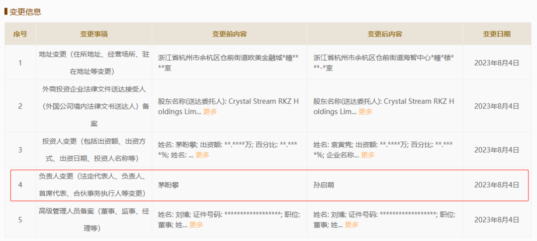 根據(jù)行業(yè)人士爆料,青眼通過(guò)國(guó)家企業(yè)信用信息公示系統(tǒng)核實(shí)了解,茅盼攀已不再擔(dān)任搖滾動(dòng)物園所屬的上海正喧品牌管理有限公司(下稱(chēng)“上海正喧”)的法定代表人、執(zhí)行董事兼總經(jīng)理,目前這些職務(wù)已均由品牌聯(lián)合創(chuàng)始人孫啟萌接任。