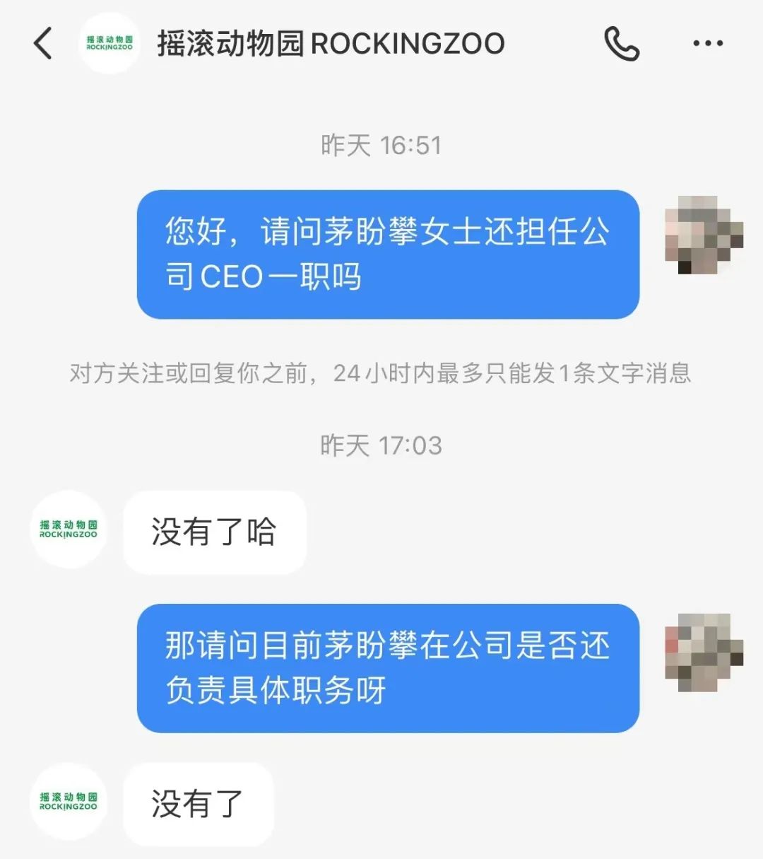 與此同時(shí),對(duì)于茅盼攀是否仍擔(dān)任公司CEO并負(fù)責(zé)具體職務(wù),搖滾動(dòng)物園官方用戶服務(wù)團(tuán)隊(duì)則向青眼表示,“沒(méi)有了”。這也間接證實(shí)了茅盼攀已從搖滾動(dòng)物園品牌退出的傳聞。