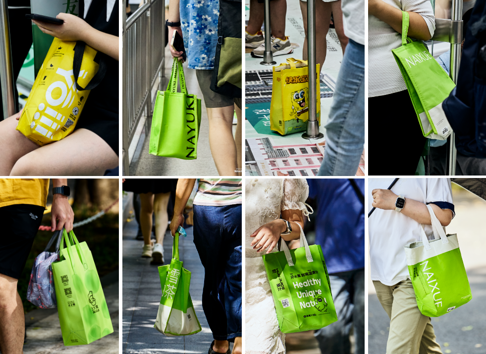 #奶茶袋正式確診為深圳市包#的話題曾沖上同城熱搜,在話題下可以感受到深圳市民們對奶茶袋的鐘情,【深圳微時光】走上深圳街頭開啟了市包求證之旅,2個小時內(nèi)就偶遇了116只奶茶袋,其中奈雪的茶以61只成功拿下“深圳市包”的榮譽,隨后,奈雪的茶和深圳發(fā)布正式聯(lián)名推出手袋。