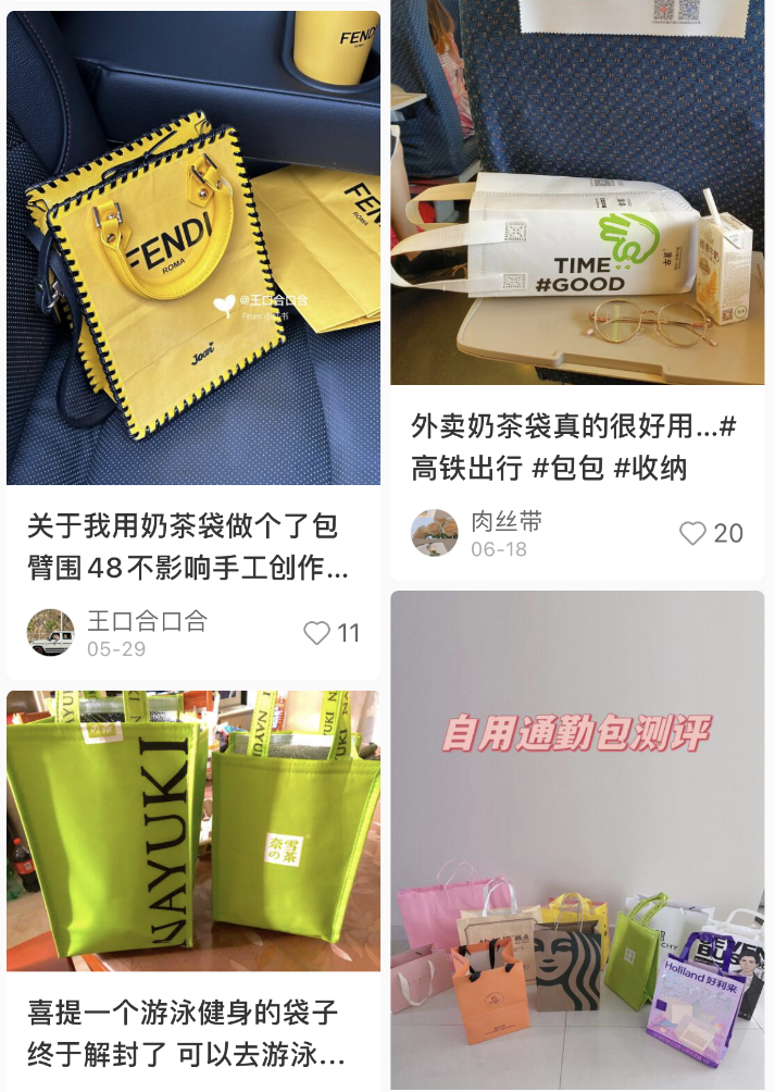 普通大眾、上班族、出差人群,在校學(xué)生,旅行人群,飲品袋就這樣以實用、百搭、可重復(fù)、經(jīng)濟(jì)實惠的特點攻入了不同圈層。然而到這一步,飲品袋的“進(jìn)攻”還沒有結(jié)束,不僅中國消費者開放了飲品袋的多種用法,不少外國友人也把使用飲品袋當(dāng)成了一種時尚。