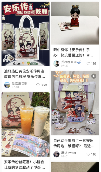 品牌見勢也主動升級周邊,為消費者創(chuàng)造更多可玩性,快樂番薯和《安樂傳》聯(lián)名推出系列周邊產(chǎn)品,其中的杯套就可以拆開再組合,做成“搖搖樂”滿足cp粉。