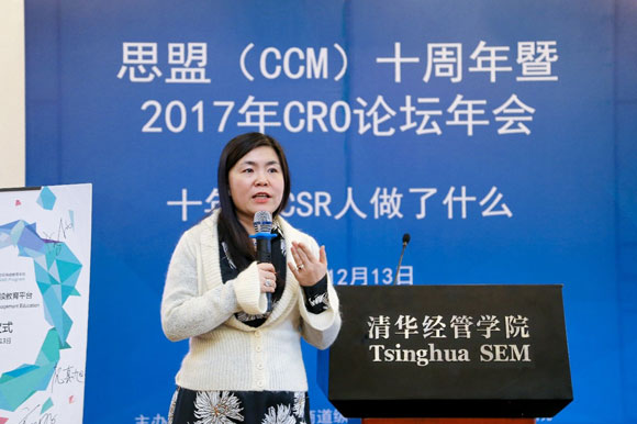 環(huán)保部宣教中心教育室祝真旭副主任發(fā)表寄語——培養(yǎng)未來商業(yè)領(lǐng)袖,“傳統(tǒng)商業(yè)社會的發(fā)展模式給社會和環(huán)境帶來諸多問題,探索商業(yè)的可持續(xù)發(fā)展已成為全球共識。商業(yè)領(lǐng)導(dǎo)者的責(zé)任領(lǐng)導(dǎo)力是可持續(xù)發(fā)展能否落地的關(guān)鍵,而商學(xué)院的傳統(tǒng)教育也面臨挑戰(zhàn)。我們也希望借助這樣一個平臺,來推動可持續(xù)發(fā)展教育,培養(yǎng)有責(zé)任領(lǐng)導(dǎo)力的商業(yè)人才。”
