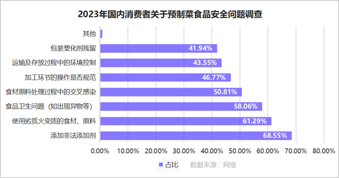 一直以來(lái),消費(fèi)者對(duì)預(yù)制菜多有擔(dān)憂與誤解。調(diào)查數(shù)據(jù)顯示,2023年消費(fèi)者對(duì)預(yù)制菜食品安全問(wèn)題擔(dān)憂中,68.55%消費(fèi)者擔(dān)心非法添加劑問(wèn)題;61.29%消費(fèi)者擔(dān)心使用劣質(zhì)或變質(zhì)的食材、原料;58.06%消費(fèi)者擔(dān)心食品衛(wèi)生問(wèn)題,擔(dān)心食材原料處理過(guò)程中的交叉污染占比50.81%,加工環(huán)節(jié)的操作規(guī)范占比46.77%。由此可見(jiàn),消費(fèi)者對(duì)預(yù)制菜的食品安全問(wèn)題的疑慮是大量存在的,預(yù)制菜企業(yè)不得不重視這些問(wèn)題。