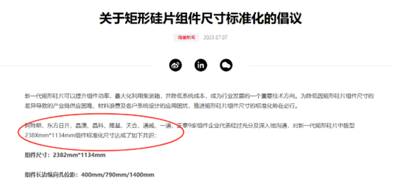 面對(duì)強(qiáng)力一體化趨勢(shì),通威、天合、東方日升“下海”進(jìn)入硅片環(huán)節(jié),意欲強(qiáng)化自身一體化趨勢(shì)。加之210市場(chǎng)份額仍然偏小,各家企業(yè)依據(jù)行業(yè)發(fā)展的客觀規(guī)律和自身利益,攜手共同制定了矩形硅片組件尺寸統(tǒng)一倡議,并在后期的組件尺寸環(huán)節(jié)上形成一統(tǒng)的格局。