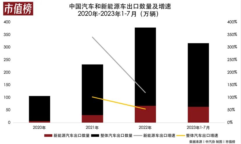 中國(guó)汽車出口正在快速增長(zhǎng),2022年,中國(guó)成為全球第一大新能源汽車出口國(guó)。2023年上半年,中國(guó)整體汽車出口量超過日本,成為全球第一。