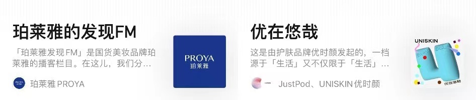 關(guān)于自建電臺,上文提及珀萊雅和優(yōu)時顏都創(chuàng)建了播客欄目,也給美妝品牌開設(shè)播客提供了一些思路,或許可以借助專業(yè)的機構(gòu)(如JustPod)進行制作和共創(chuàng)。