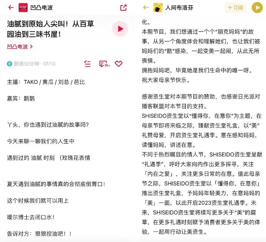 1、資生堂:節(jié)日期間與多個知名播客欄目合作,從聽覺上輸出產(chǎn)品理念。
