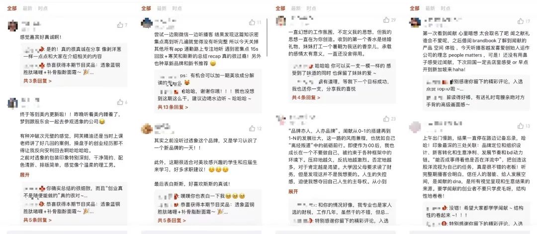 比如,「美妝內(nèi)行人」邀請了透象創(chuàng)始人老楊、聞獻創(chuàng)始人孟昭然進行對話,在評論區(qū)也有多位網(wǎng)友表示“好評”、“干貨多”。