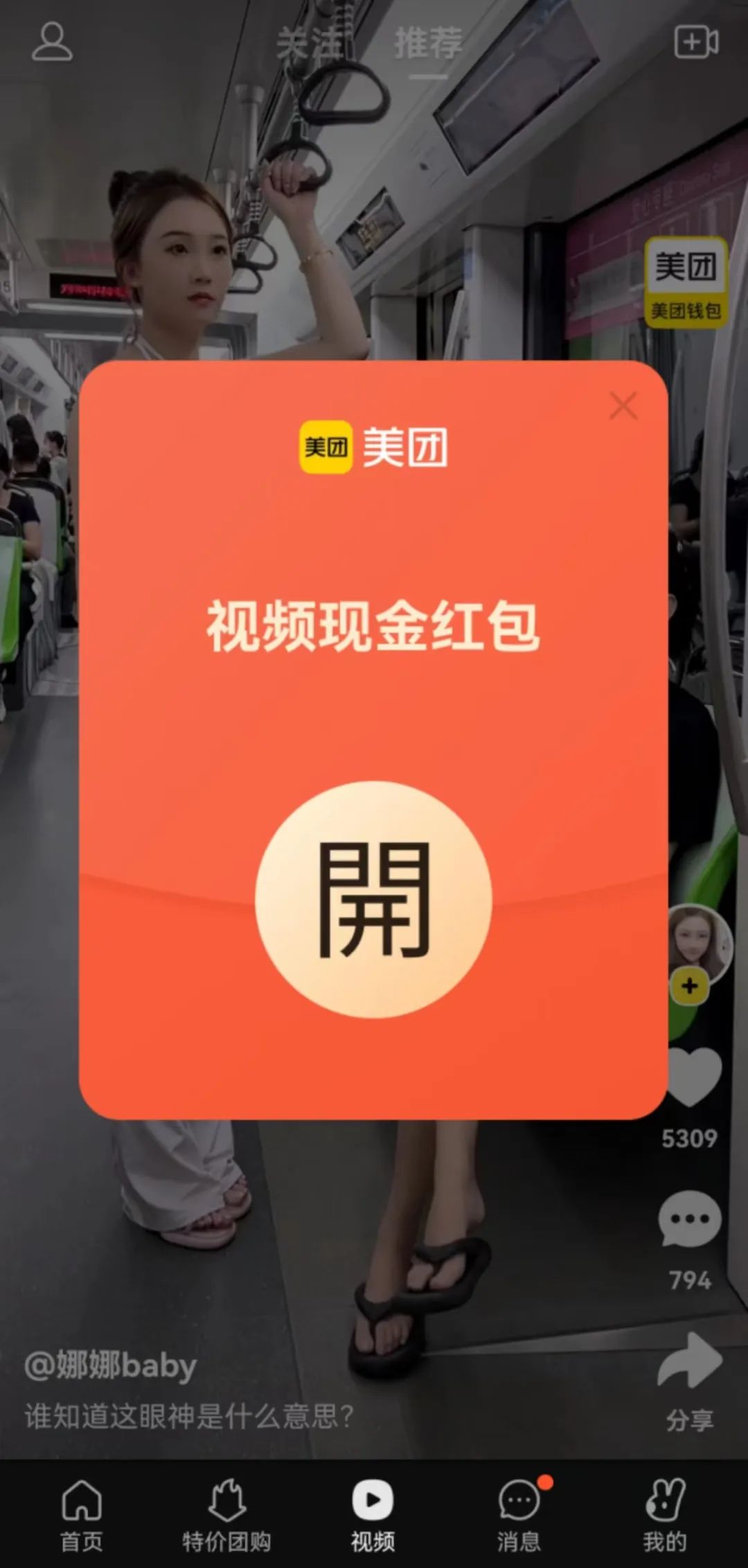 打開美團App,最大的變化在于首頁多了“短視頻”板塊。打開后,首先跳出來的是“恭喜獲得現(xiàn)金獎勵”,“看視頻得現(xiàn)金”“再上滑1次,得一筆現(xiàn)金打款”刺激著用戶繼續(xù)瀏覽短視頻。從目前一些短視頻數(shù)據(jù)來看,幾萬點贊的并不少。