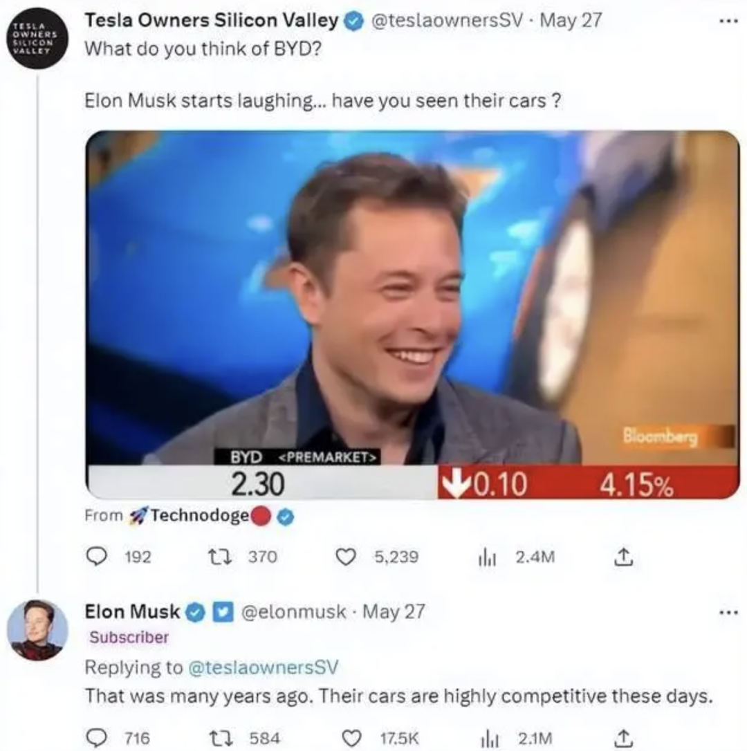 新勢力們可能拿了不少的融資,但排行榜上,大多數(shù)還是熟悉的品牌。不過,風(fēng)物長宜放眼量,要知道,很多年前,馬斯克也曾嘲笑過比亞迪,但在今年5月,他已經(jīng)改口稱比亞迪的車