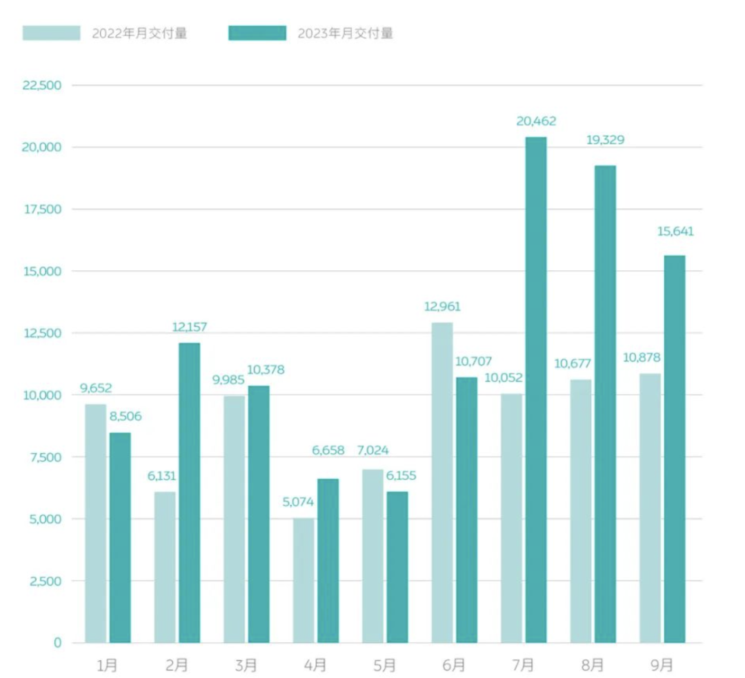 截至2023年9月30日,小鵬汽車三季度累計交付量達(dá)40008臺,環(huán)比增長72%。目前,小鵬G6產(chǎn)能已顯著提升,9月19日,2024款小鵬G9上市并熱銷,在前期生產(chǎn)、供應(yīng)端的充分準(zhǔn)備基礎(chǔ)上,小鵬汽車正加緊提升G9產(chǎn)能爬坡速度,加速交付在手訂單。9月底,第一批國際版小鵬G9已正式開啟歐洲四國(挪威、瑞典、荷蘭、丹麥)交付。預(yù)計不久后能從此款車型上獲得更高的銷量。