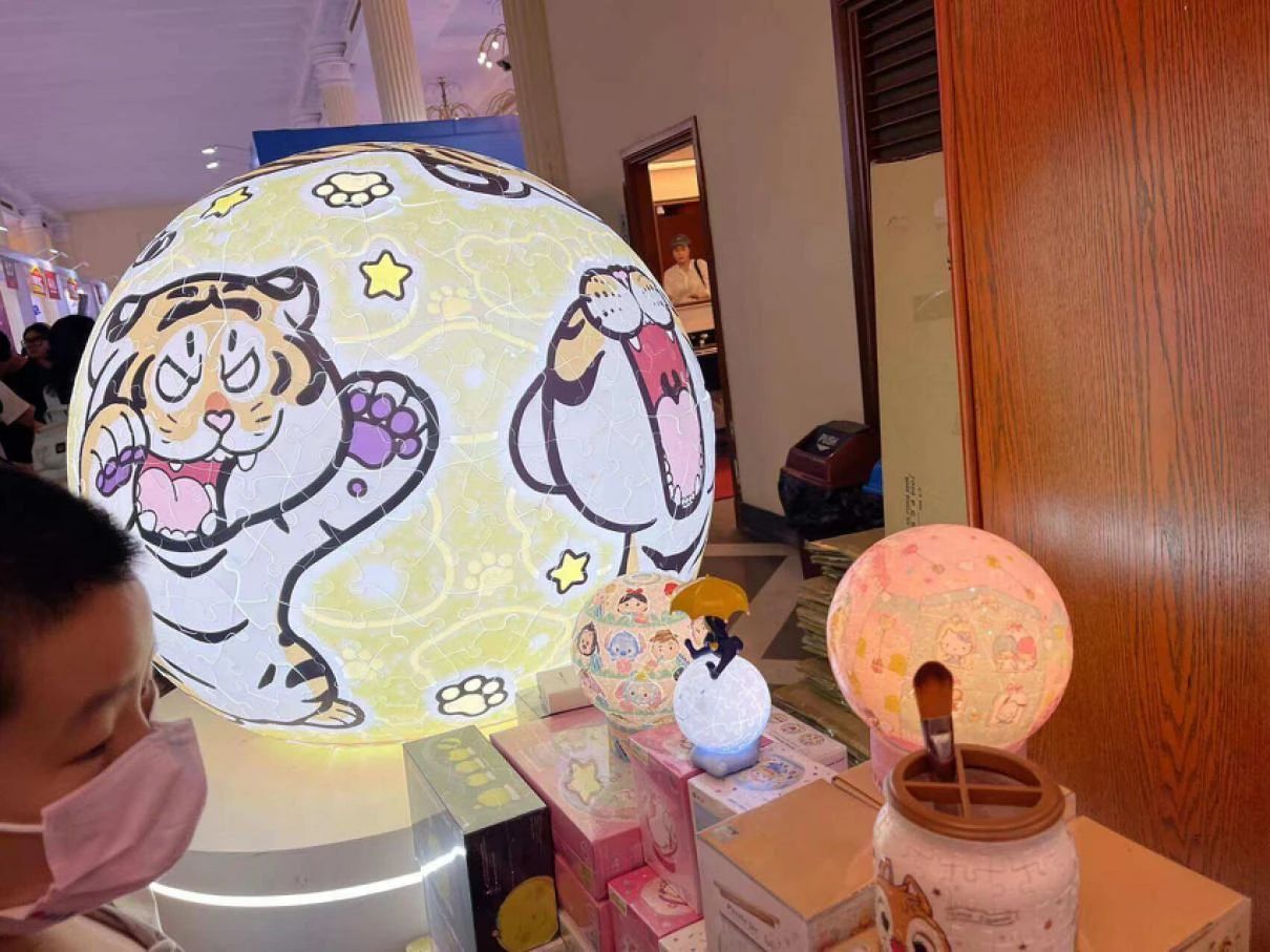 上海書展上的胖虎拼圖燈以及各種拼圖罐子、擺件,新零售商業(yè)評論攝