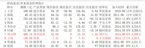 統(tǒng)計(jì)顯示,招商基金42位外來基金經(jīng)理中,在管規(guī)模前10的基金經(jīng)理中,8人在管貨幣或債基,只有2人在管混合基金。