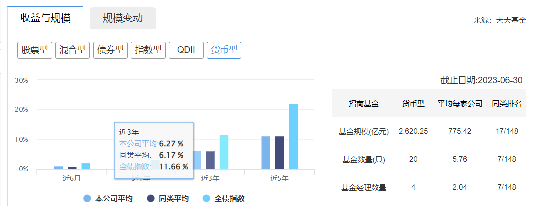 天天基金網(wǎng)數(shù)據(jù)顯示,截至10月19日,招商基金貨幣基金近3年平均收益6.27%,同類平均6.17%,跑贏同行0.1%。