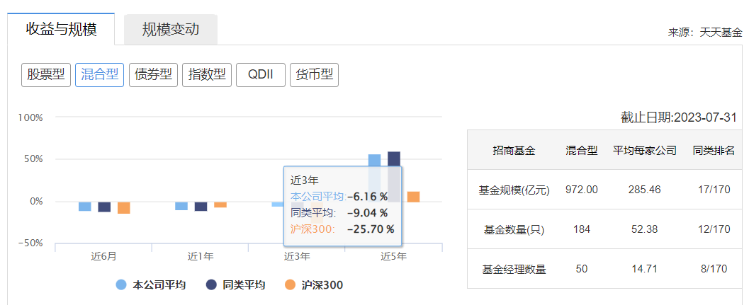 招商基金混合型基金近3年平均虧損6.16%,同類平均虧損9.04%,跑贏同行2.88%。