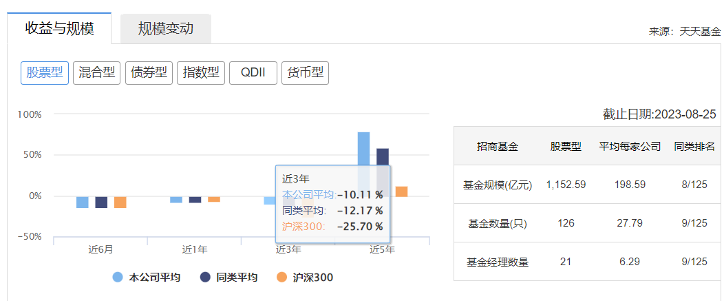 從投資績(jī)效上看,一般而言,機(jī)構(gòu)應(yīng)該以5年為周期考核,但考慮到招商基金不少人入職時(shí)間相對(duì)較晚,這里以公司近3年投資業(yè)績(jī)與同行對(duì)比。