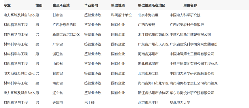 一直以來,華北電力大學學子所聚焦的主要行業(yè)都是能源電力領域,從下圖的2023屆畢業(yè)生去向部分截圖也可發(fā)現(xiàn),大多數(shù)畢業(yè)生也都投身了我國的電力企業(yè),當然,這些企業(yè)大多為國企。