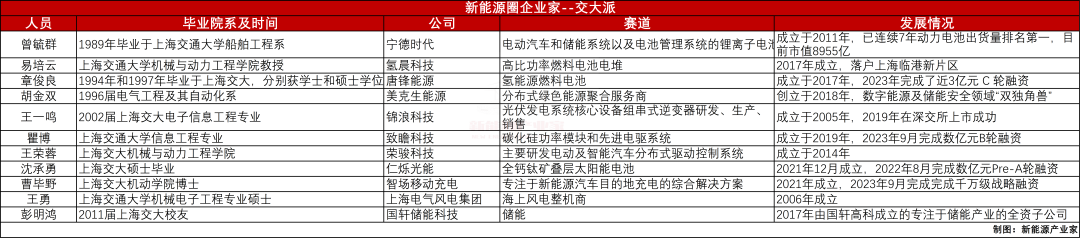 聚焦到新能源賽道,最有名的便是寧德時代,寧德時代掌門人曾毓群于1985年考入上海交通大學船舶工程系,之后創(chuàng)辦寧德時代并帶領寧德一路成為動力電池“寧王”,現(xiàn)在更是上交系在新能源賽道最重要的一位大哥。