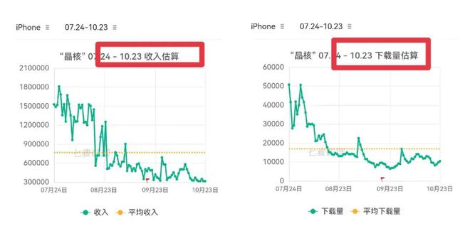 圖/《晶核》近3月收入趨勢(shì)及下載量趨勢(shì) 來源/七麥數(shù)據(jù) 鏡觀臺(tái)截圖