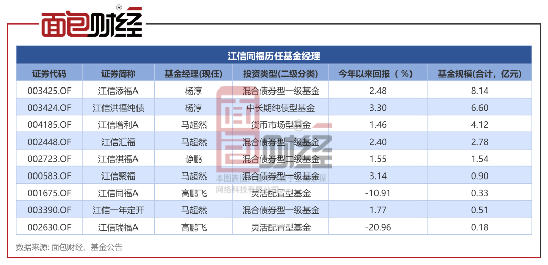 研究發(fā)現(xiàn),下半年以來,江信基金旗下基金經(jīng)理離任頻繁。其中,基金經(jīng)理?xiàng)铢i飛在離任江信增利貨幣、江信匯福定開債后,于10月17日再度離任江信添福。公告顯示,楊鵬飛已因個(gè)人原因離職。