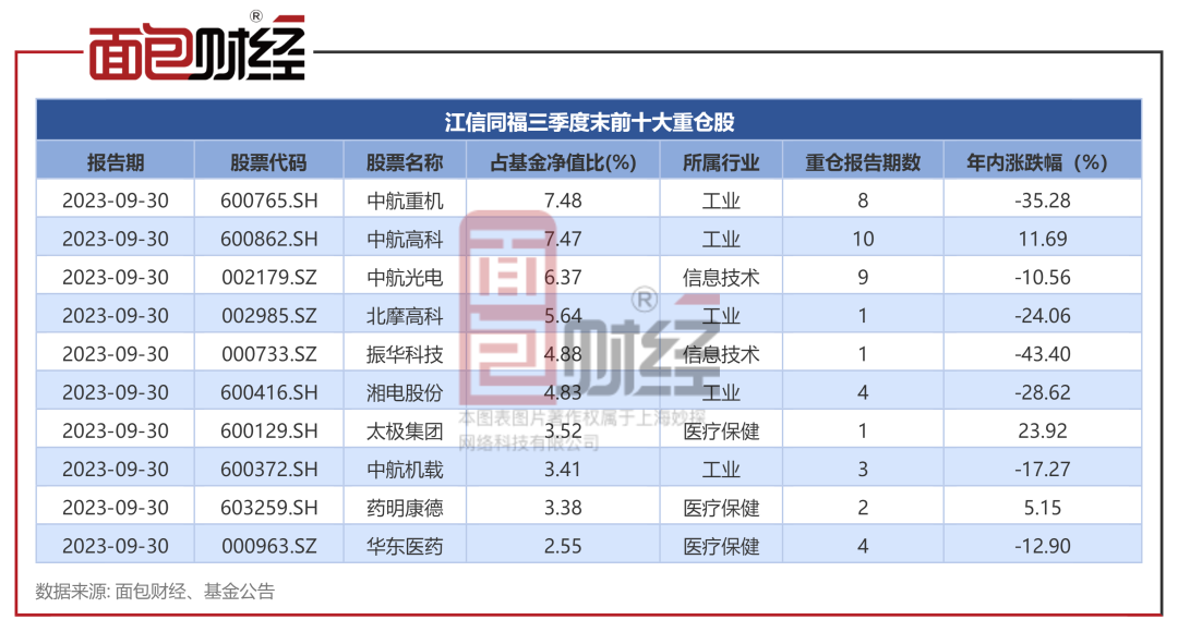2023年以來,該基金7只重倉股年內(nèi)股價(jià)出現(xiàn)下跌,其中基金第一大重倉股中航重機(jī)今年以來股票下跌35.28%。振華科技、湘電股份等重倉股跌幅同樣居前,分別下跌43.4%、28.62%。