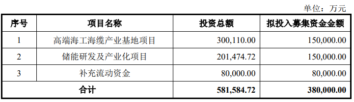 遠東股份定增項目已于2023年8月獲得上交所受理,并于2023年10月向上交所提交審核問詢函回復。募集說明書顯示,公司計劃募資不超過38億元,用于高端海工海纜產業(yè)基地項目、儲能研發(fā)及產業(yè)化項目兩個項目投建并補充流動資金。