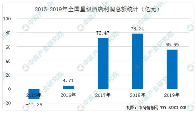 根據(jù)中商產業(yè)研究院的統(tǒng)計,2019年中國星級酒店的利潤總額是55.59億,而當年星級酒店的數(shù)量是8920家。那么平均每家利潤只有62萬元!