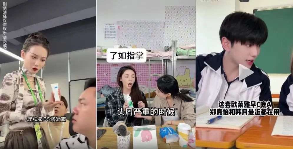 用了理膚泉修復霜后瞬間“蕩漾”一秒離開的職場總管、被帥氣同桌當做禮物送給暗戀對象的“歐萊雅早C晚A”,拯救焦躁閨蜜“隨便拍兩下立馬換皮”的蘭蔻氣墊……在達人的劇情中,不會有全方位的產(chǎn)品外觀特寫和精致的使用說明,而是成為劇情道具的產(chǎn)品,附帶簡明扼要并不影響內(nèi)容的15秒內(nèi)解說。