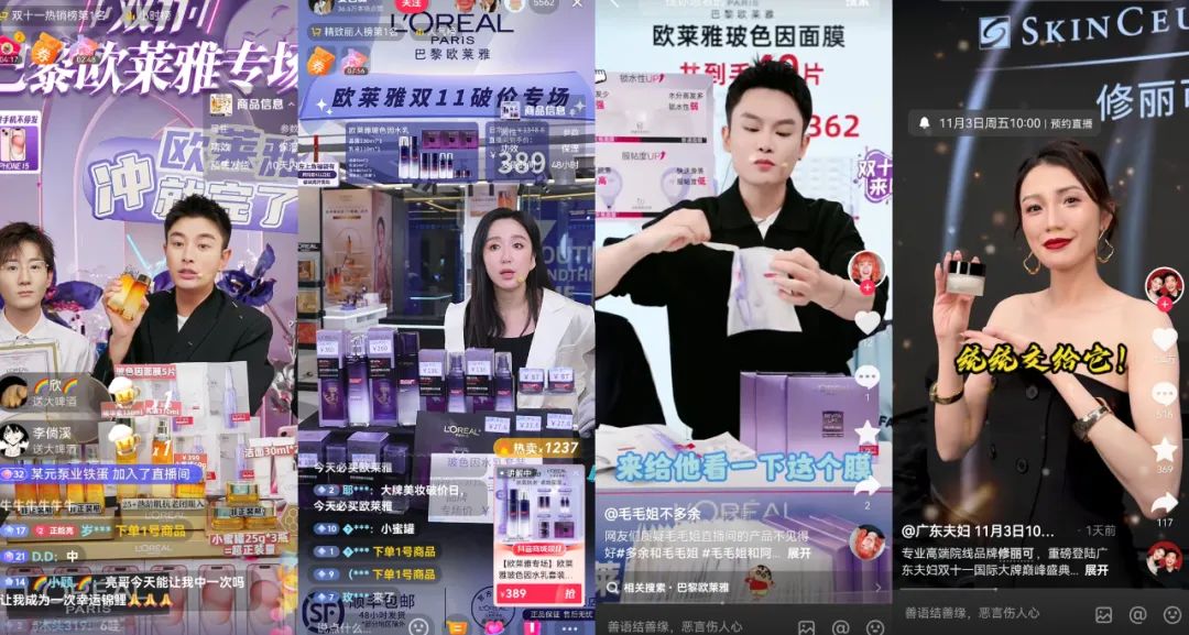 即便是在品牌大力發(fā)展的自播間,都有著愈發(fā)明確的催售趨向。以蘭蔻為例,此前其電商負責人接受采訪時,曾表示要求品牌的抖音自播間內(nèi)“60%講產(chǎn)品、30%講品牌和會員、10%講機制和活動”,但在當下雙十一的節(jié)點進入直播間,看到的幾乎全部都是機制和活動買贈向內(nèi)容。