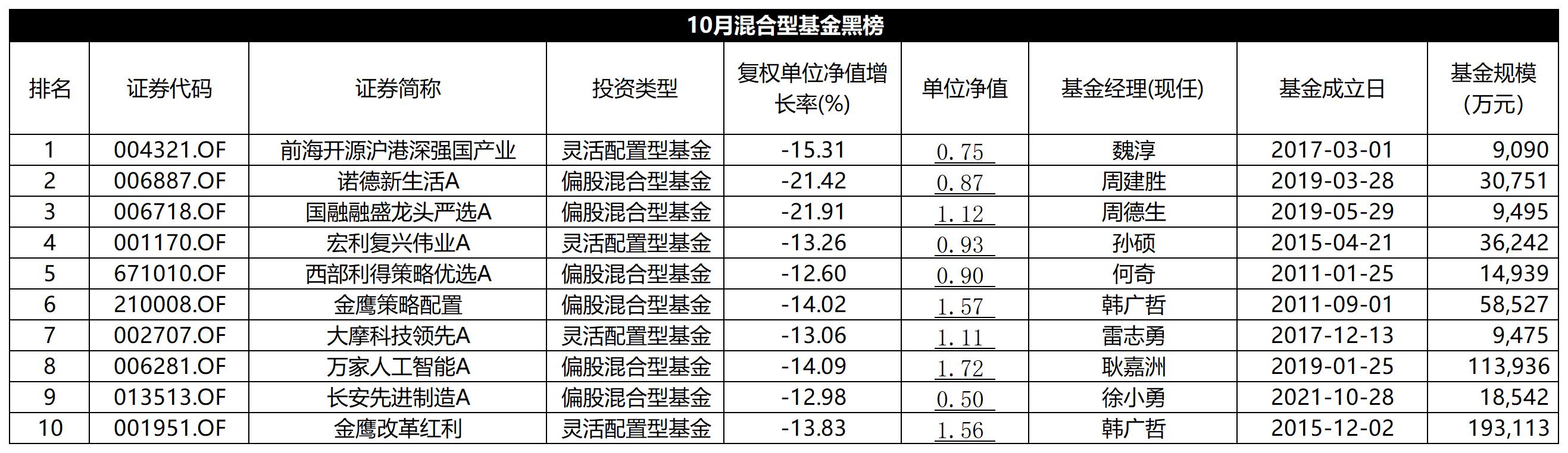 凈值下跌幅度較大的黑榜基金,包括國(guó)融融盛龍頭嚴(yán)選A、諾德新生活A(yù)、前海開源滬港深強(qiáng)國(guó)產(chǎn)業(yè)等,分別下跌21.91%、21.42%、15.31%。