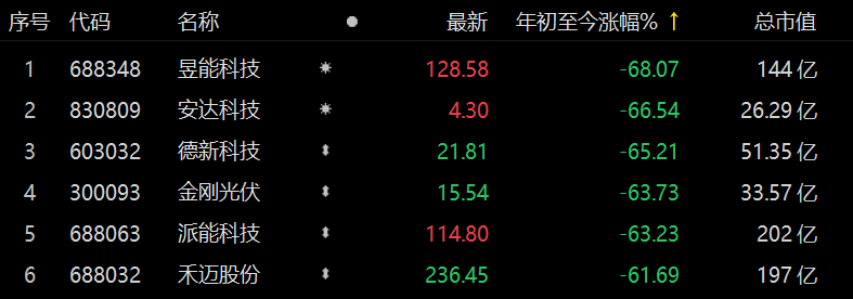 如果看一下2023年的大A跌幅榜,滬深京5302家上市公司,前六家之中竟然有四家是光伏與逆變器企業(yè)。微型逆變器企業(yè)昱能科技更是位列跌幅榜首位。
