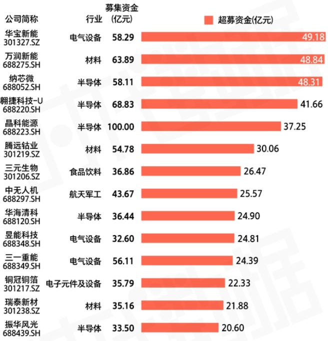 2022年超募在20億以上公司;來源:WIND、時(shí)代數(shù)據(jù)等