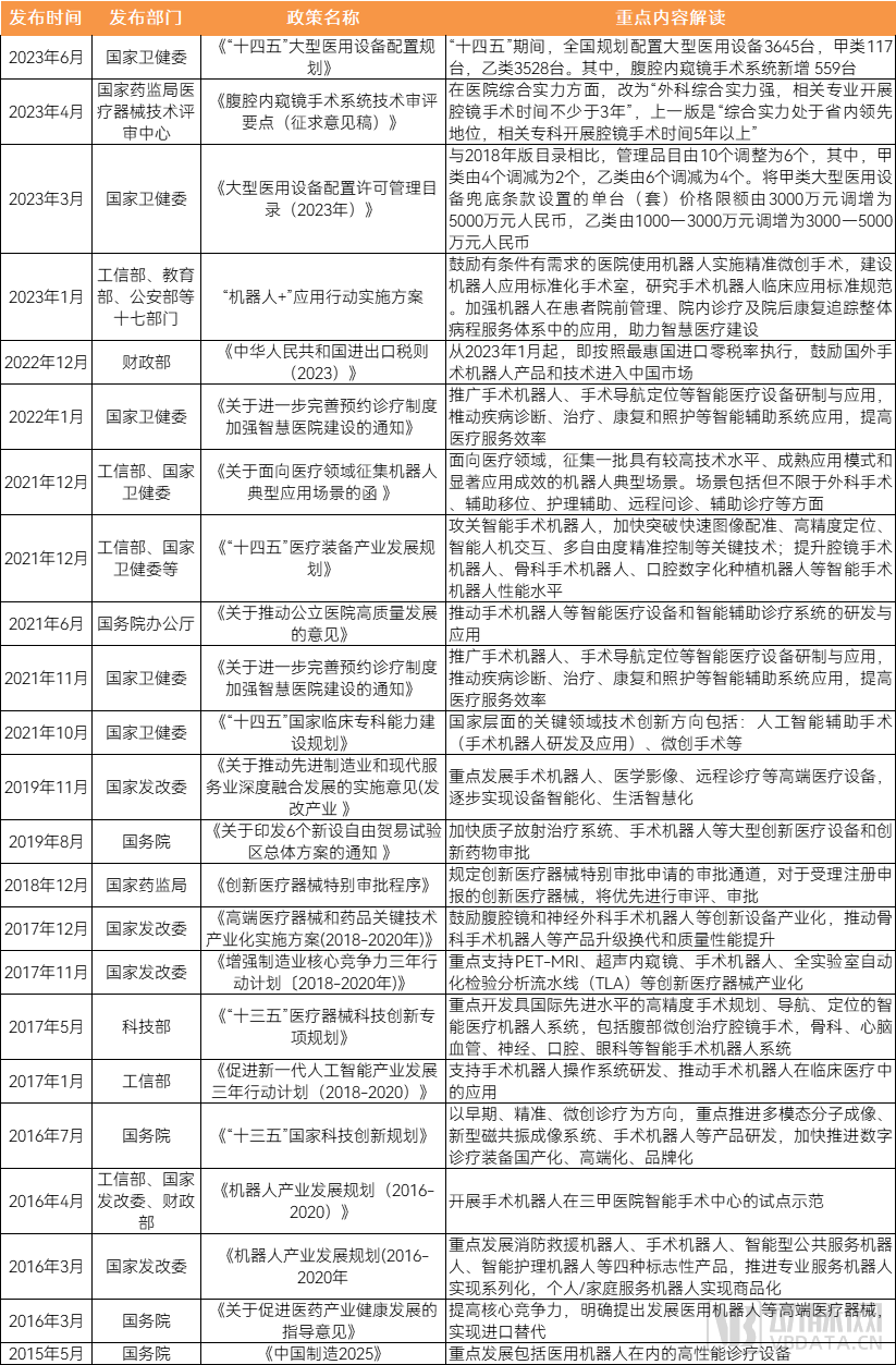 圖表 近年國家針對手術(shù)機器人相關(guān)的政策 圖片來源:蛋殼研究院