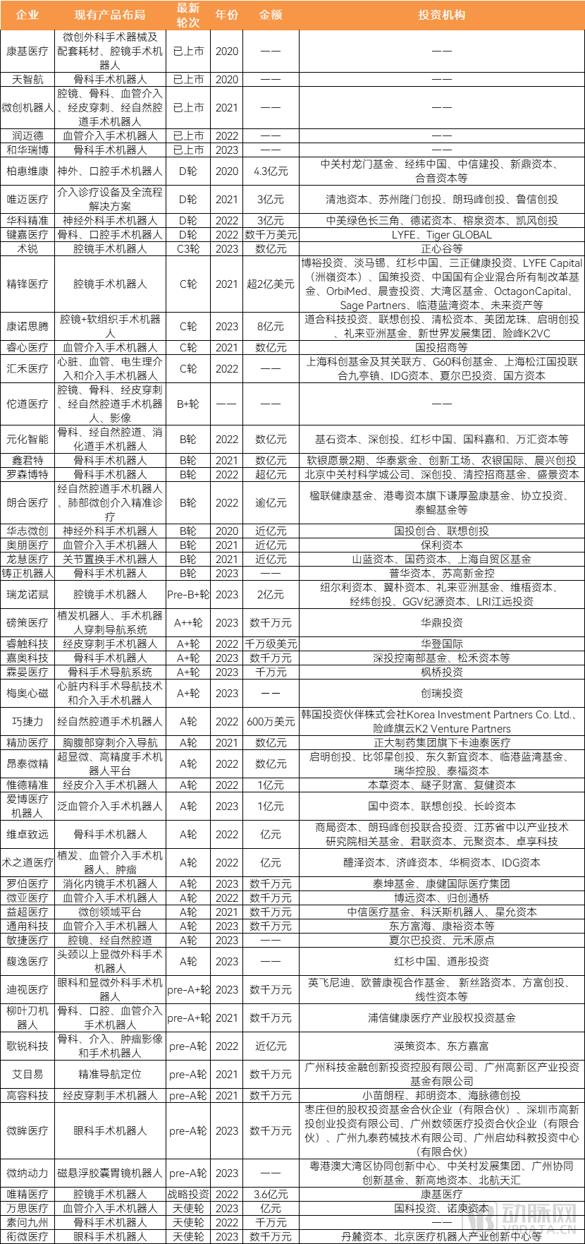 圖表 2020年以來手術(shù)機器人公司融資統(tǒng)計 數(shù)據(jù)來源:各公司官網(wǎng)等公開信息