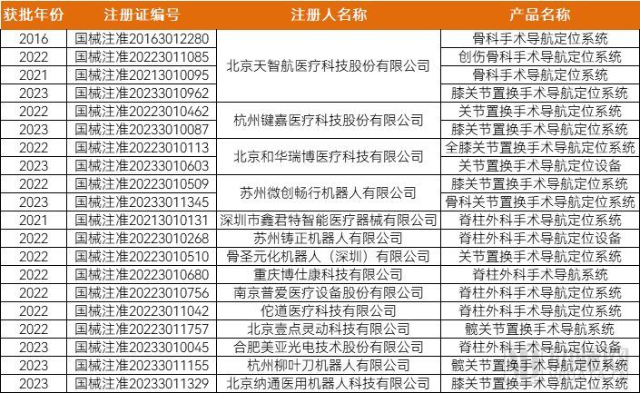 圖表 國內(nèi)獲批骨科手術(shù)機器人盤點 數(shù)據(jù)來源:NMPA