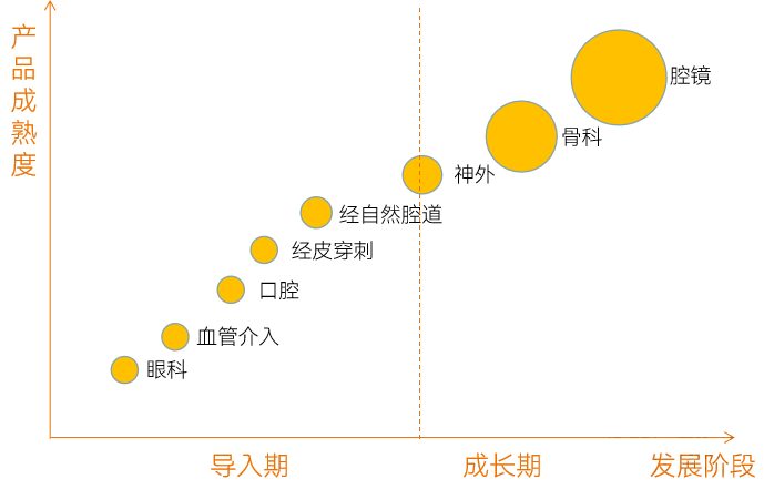 圖表 不同類別的手術(shù)機器人產(chǎn)品成熟度和發(fā)展階段