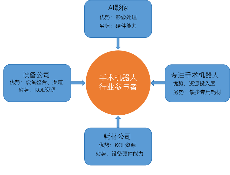 從企業(yè)端來看,目前主要有四類企業(yè)布局手術(shù)機器人,具體如下: