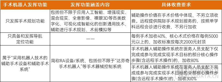 圖表 手術(shù)機器人收費要求 圖片來源:湖南省醫(yī)保局