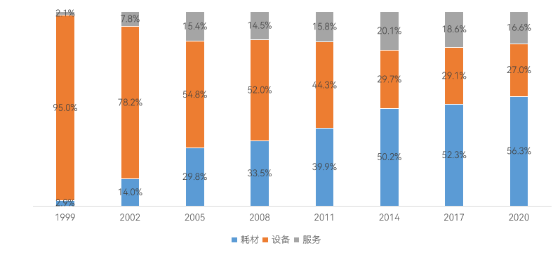 就商業(yè)模式上看,手術(shù)機器人市場主要分為三部分:設(shè)備、服務(wù)費、耗材。以達芬奇手術(shù)機器人為例,短期看設(shè)備,長期看耗材和服務(wù)。