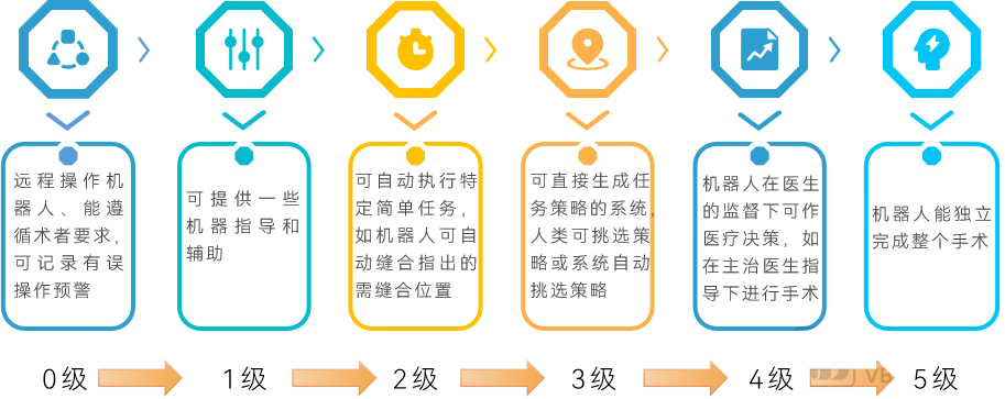 另外,手術(shù)機器人邁向自動化和智能化是必然,接下來將向自動化2級和3級邁進,并在技術(shù)上做復(fù)合,比如復(fù)合0級、1級和部分的2級共同邁向第3級。