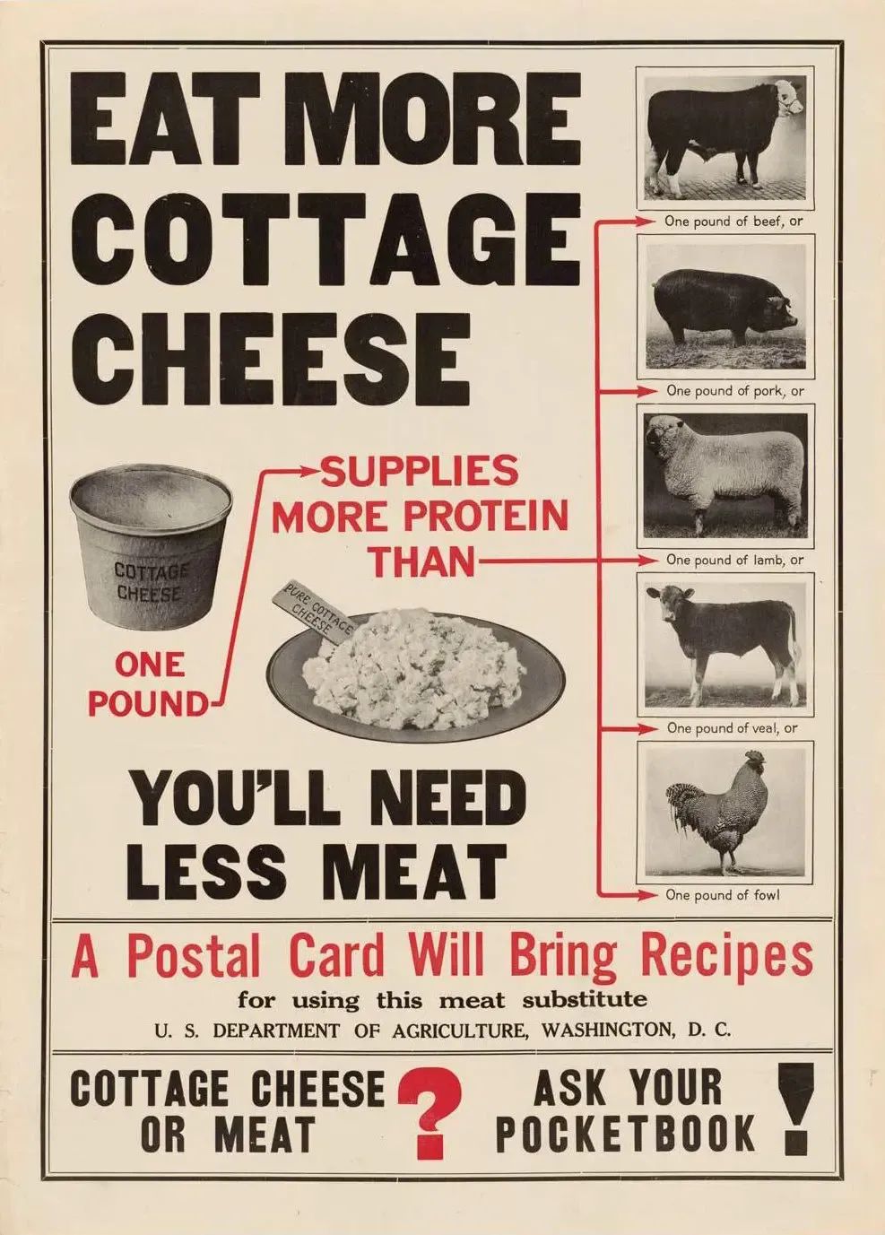 一戰(zhàn)期間,官方宣傳農(nóng)家奶酪是出色的蛋白質(zhì)替代品;減肥人士將它加入自己的減肥食譜;在20世紀(jì)70年代中期,每個州生產(chǎn)商每年會生產(chǎn)超過10億英鎊的農(nóng)家奶酪[1]。